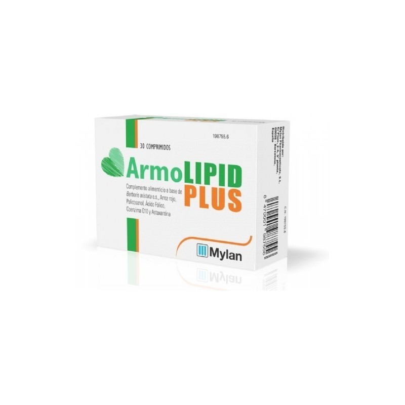 ArmoLIPID PLUS es un complemento alimenticio que contiene Berberis aristata e. S., Arroz rojo fermentado (con una cepa concreta de Monascus purpureus), Policosanol, Ácido fólico, Coenzima Q10 y Astaxantina. El extracto seco obtenido de la corteza de Berberis aristata , favorece el control de los triglicéridos, y ayuda a controlar los niveles de colesterol plasmático, acompañado de una alimentación adecuada para este fin.
