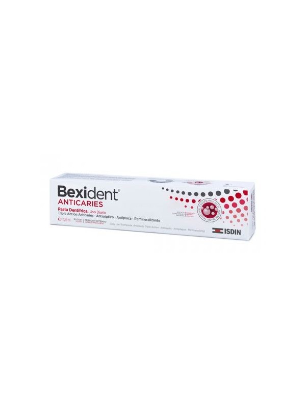 PROPIEDADESBEXIDENTANTICARIES ES EL PRIMER ANTICARIES QUE CONTIENE CRANPEARLS TECH, UNA INNOVADORA COMBINACIÓN DE FLUORURO SÓDICO Y EXTRACTO DE ARÁNDANO ROJO QUE APORTA UNA TRIPLE ACCIÓN ANTICARIES Y EVITA LA COLONIZACIÓN DE LAS BACTERIAS INCLUSO EN LAS ZONAS DE MÁS DIFÍCIL ACCESO. DE ESTA FORMA SE IMPIDE QUE LAS BACTERIAS FORMEN UN BIOFILM O CAPA PRECURSORA DE LA PLACA BACTERIANA, PROTEGIENDO ASÍ DIENTES Y ENCÍAS. EL EXTRACTO DE ARÁNDANO ROJO, COMPONENTE NATURAL CUYA SUSTANCIA ACTIVA SON LAS PROANTOCIANIDINAS, HA DEMOSTRADO EN VARIOS ESTUDIOS TENER UN EFECTO ANTIADHESIVO, ANTIMICROBIANO Y ANTIOXIDANTE, INHIBIENDO LA FORMACIÓN DE PLACA BACTERIANA Y MANTENIENDO EL PH DE LA CAVIDAD BUCAL.MODO DE EMPLEOUSAR 3 VECES AL DÍA DESPUÉS DE CADA COMIDA.