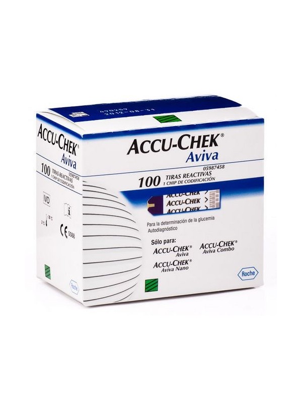 PROPIEDADESLAS TIRAS REACTIVAS ACCU-CHEK AVIVA ESTÁN INDICADAS PARA LOS DISPOSITIVOS MEDIDORES DE GLUCOSA DE LA GAMA AVIVA (ACCU-CHEK AVIVA, ACCU-CHEK AVIVA NANO, ACCU-CHEK AVIVA COMBO, ACCU-CHEK AVIVA EXPERT).SE RECOMIENDA UTILIZAR SÓLO ESTAS TIRAS PARA ESTE DISPOSITIVO, YA QUE EL USO DE TIRAS DE OTRAS MARCAS PODRÍAN DAR RESULTADOS ERRÓNEOS.ES ACONSEJABLE MANTENER LAS TIRAS SIEMPRE DENTRO DE SU ENVASE ORIGINAL, PARA GARANTIZAR UN BUEN ESTADO DE LAS MISMAS Y UNOS RESULTADOS PRECISOS.POSEEN UN EXTREMO DORADO QUE ES EL QUE SE INSERTA EN LE MEDIDOR, Y OTRO EXTREMO AMARILLO DONDE SE COLOCA LA MUESTRA DE SANGRE.MODO DE EMPLEOINTRODUCIR UNA TIRA REACTIVA EN EL MEDIDOR Y COMPROBAR QUE EL CÓDIGO DE LA PANTALLA CORRESPONDA CON EL CÓDIGO DEL ENVASE DE LAS TIRAS.